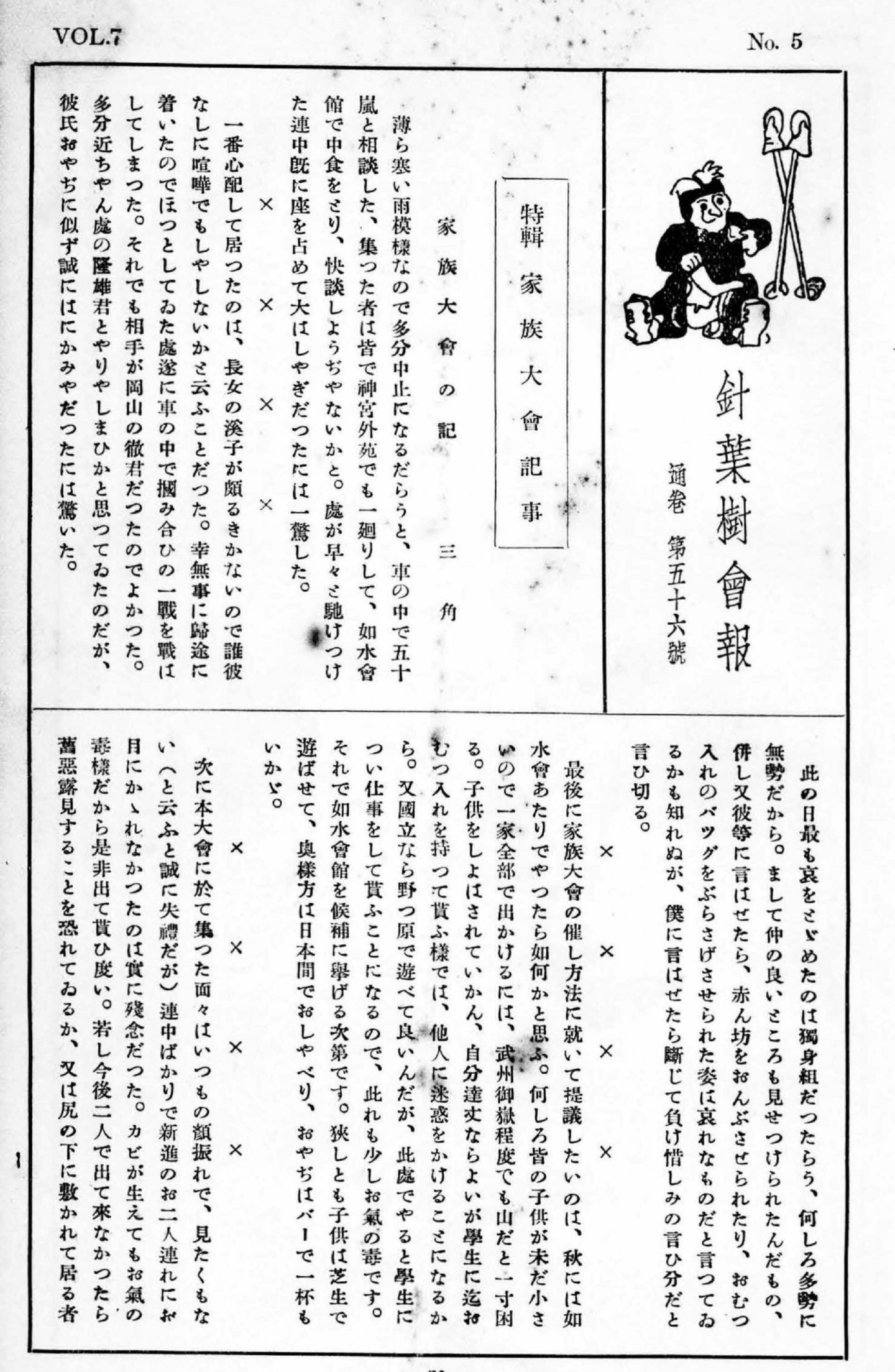 5.原本の通巻、第〇年〇号の印刷ミスは訂正しました。『戦前針葉樹会報』の赤色付け欄の数字が正、原本の誤りは右欄外に示しました。